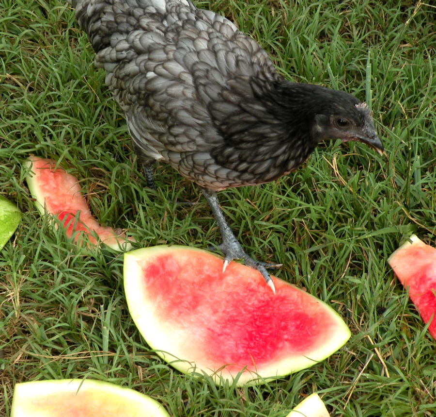 Well that man...that man and his chickens.He found out they LOVE watermelon,