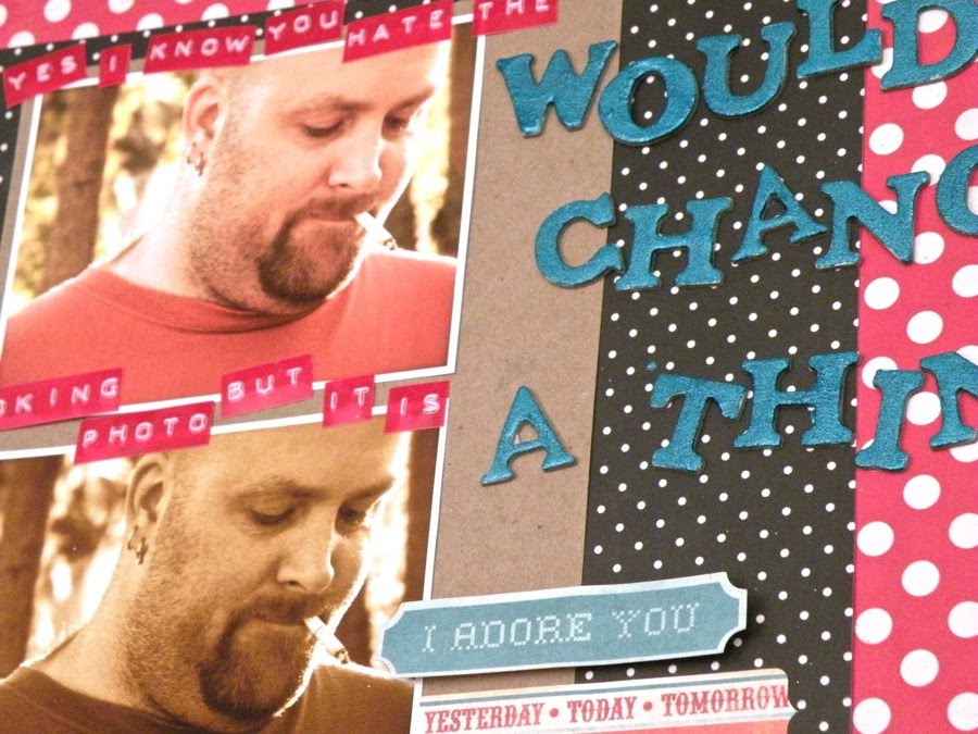It's a wonderful layout and I wouldn't worry about what people think about your hubby smoking - we ALL have our ways of de-stressing - some people smoke, some drink, some eat, some scrap, some paint, some go on long walk - each to their own I say.